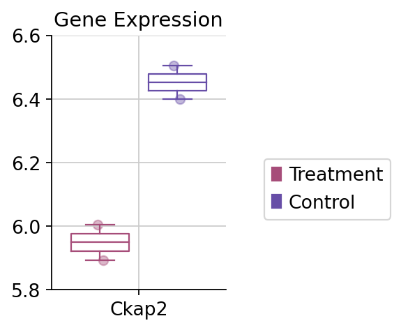 fig,ax=dds.plot_boxplot(genes=['Ckap2'],treatment_groups=treatment_groups,