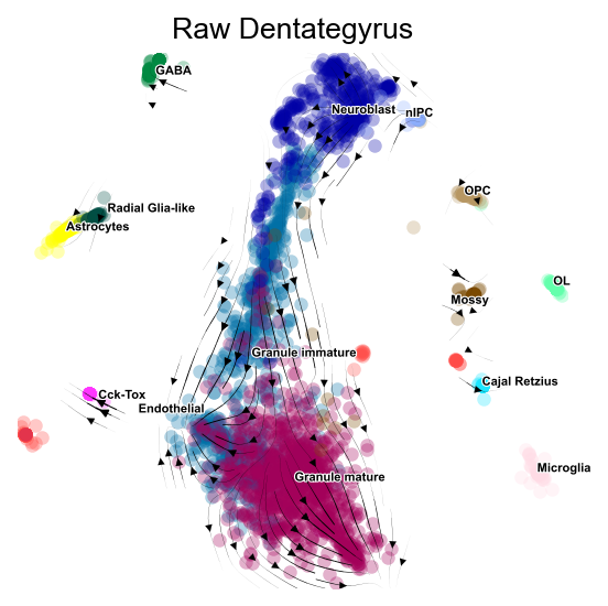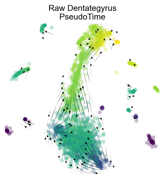 plt.title('Raw Dentategyrus\nPseudoTime',fontsize=12)