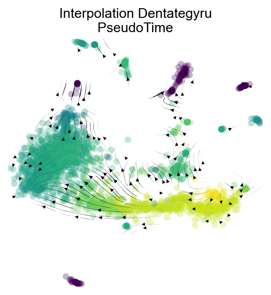 plt.title('Interpolation Dentategyru\nPseudoTime',fontsize=12)
