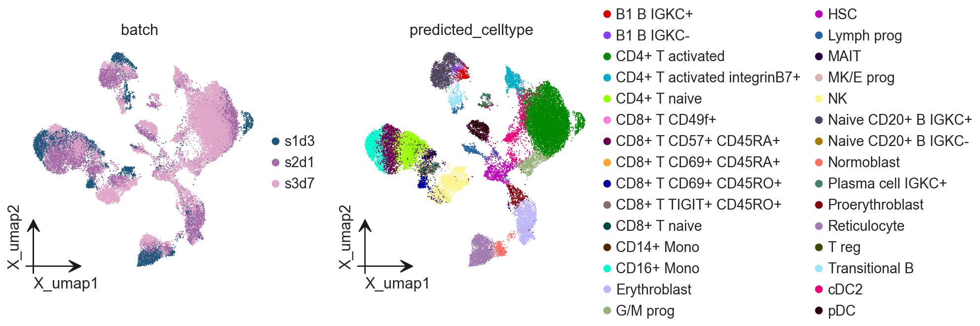 Found 30 cell types: ['B1 B IGKC+', 'B1 B IGKC-', 'CD4+ T activated', 'CD4+ T activated integrinB7+', 'CD4+ T naive', 'CD8+ T CD49f+', 'CD8+ T CD57+ CD45RA+', 'CD8+ T CD69+ CD45RA+', 'CD8+ T CD69+ CD45RO+', 'CD8+ T TIGIT+ CD45RO+', 'CD8+ T naive', 'CD14+ Mono', 'CD16+ Mono', 'Erythroblast', 'G/M prog', 'HSC', 'Lymph prog', 'MAIT', 'MK/E prog', 'NK', 'Naive CD20+ B IGKC+', 'Naive CD20+ B IGKC-', 'Normoblast', 'Plasma cell IGKC+', 'Proerythroblast', 'Reticulocyte', 'T reg', 'Transitional B', 'cDC2', 'pDC']