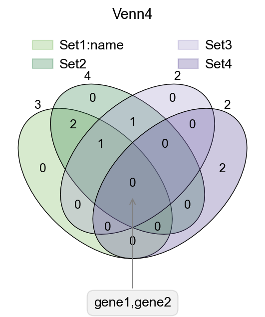 sets: Subgroups requiring venn plots, Dictionary format, keys no more than 4