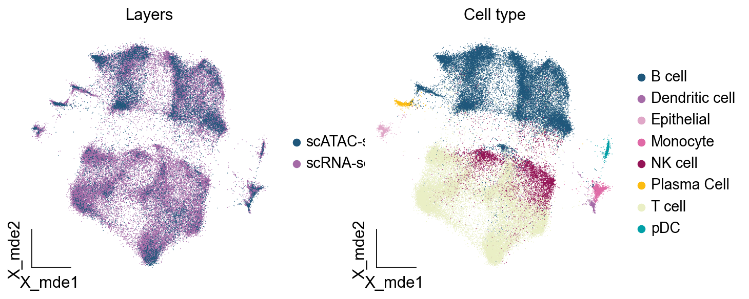 combined.obsm['X_mde']=ov.utils.mde(combined.obsm['X_glue'])