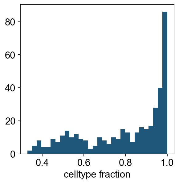 We can see that for the majority of neighbourhoods, almost all cells have the same cell type label. We can rename neighbourhoods where less than 60% of the cells have the top label as “Mixed”