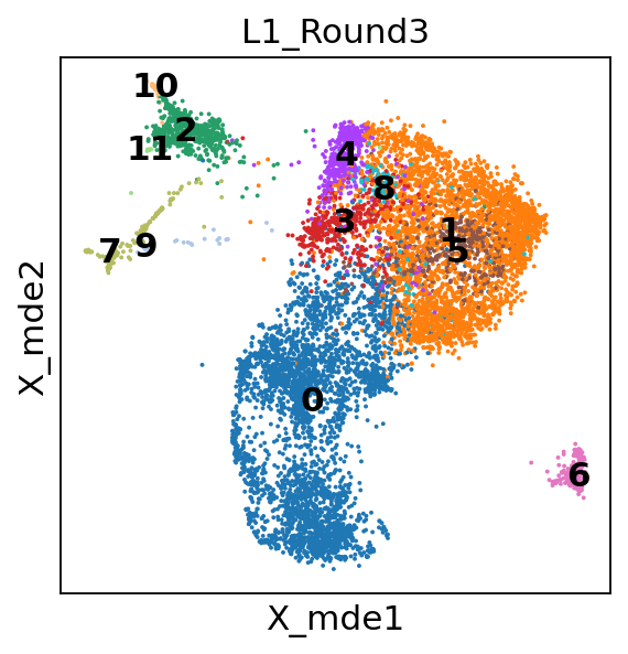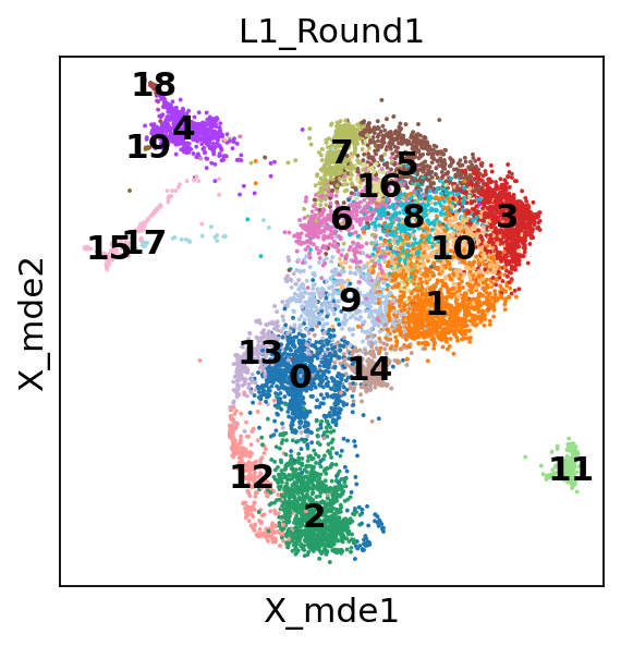 'leiden_clusters_L1', the cluster labels (adata.obs, categorical) (0:00:04)