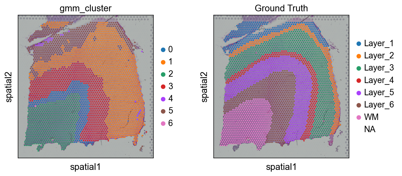 ov.utils.cluster(adata,use_rep='spaceflow',method='GMM',n_components=7,covariance_type='full',